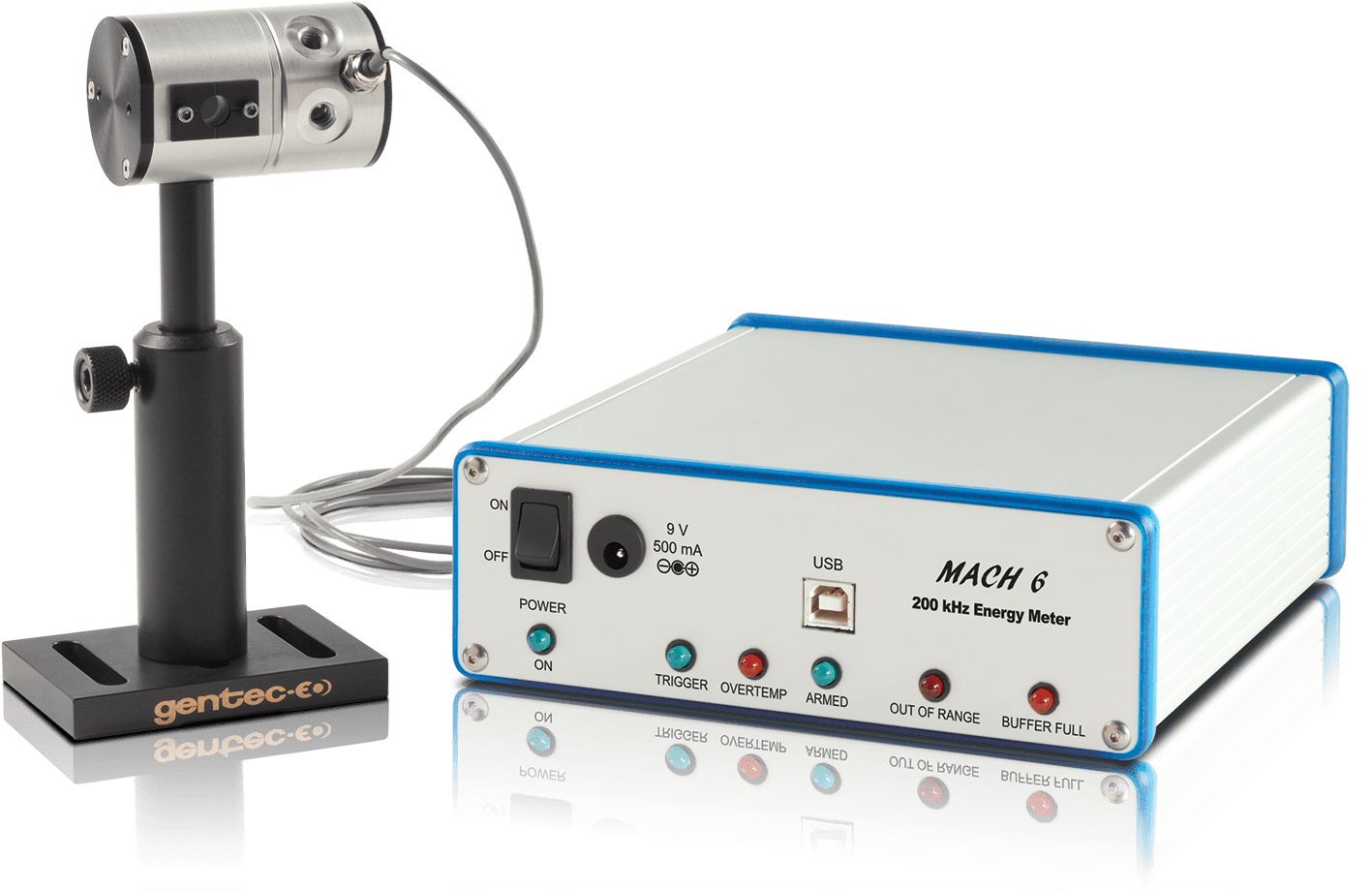 Measure every pulse at up to 200 kHz with MACH 6. Measure with 12-bit digital accuracy and capture up to 4 million pulses in real time. Our MACH 6 joulemeter is the only instrument in the world that performs at this speed, and with this precision. It is designed to support our full complement of fast energy probes that include silicon, InGaAs and pyroelectric detectors. Measure from pJ to mJ and from 0.35 to 2.5 µm. Using the M6-SI detector and the M5-UC-QED accessory, you can make relative measurements at 266 nm.