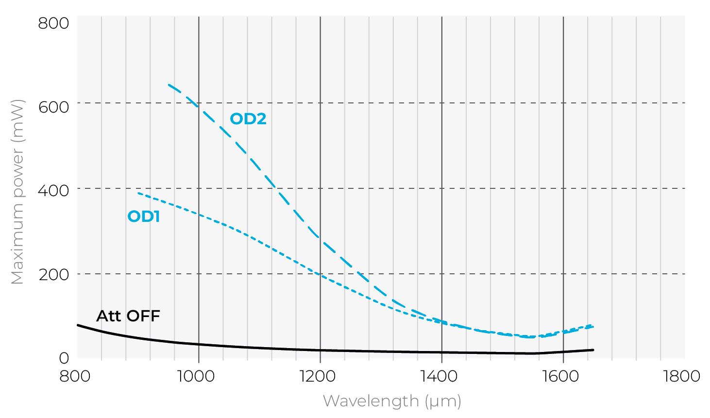 • 1. At 1064 nm, with attenuator. See curves for maximum power at other wavelengths.