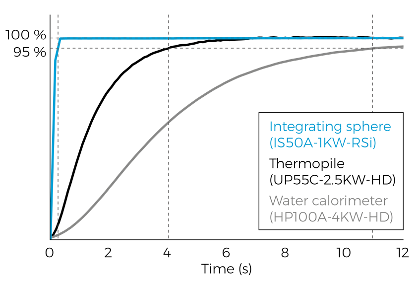 The IS series opens up new measurement possibilities such as following the complete ramp-up of high-power laser sources, or tracking fast changes in kW-level laser power. The integrating sphere’s proprietary coating was designed to handle high laser power density, and its NIST-traceable calibration provides accurate, reliable results.